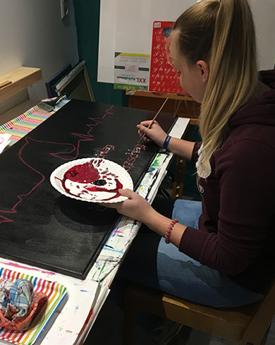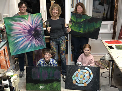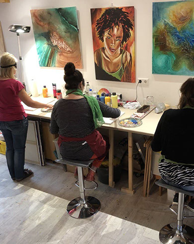 In kleinen Gruppen kann nach Herzenslust mit Öl- oder Acrylfarben gemalt, gewischt