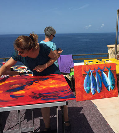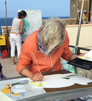 Ich organisiere Malreisen z.B. nach Mallorca, um dort das besondere Licht einzufangen oder nach Tirol, um in der klaren Luft, Farben und Formen